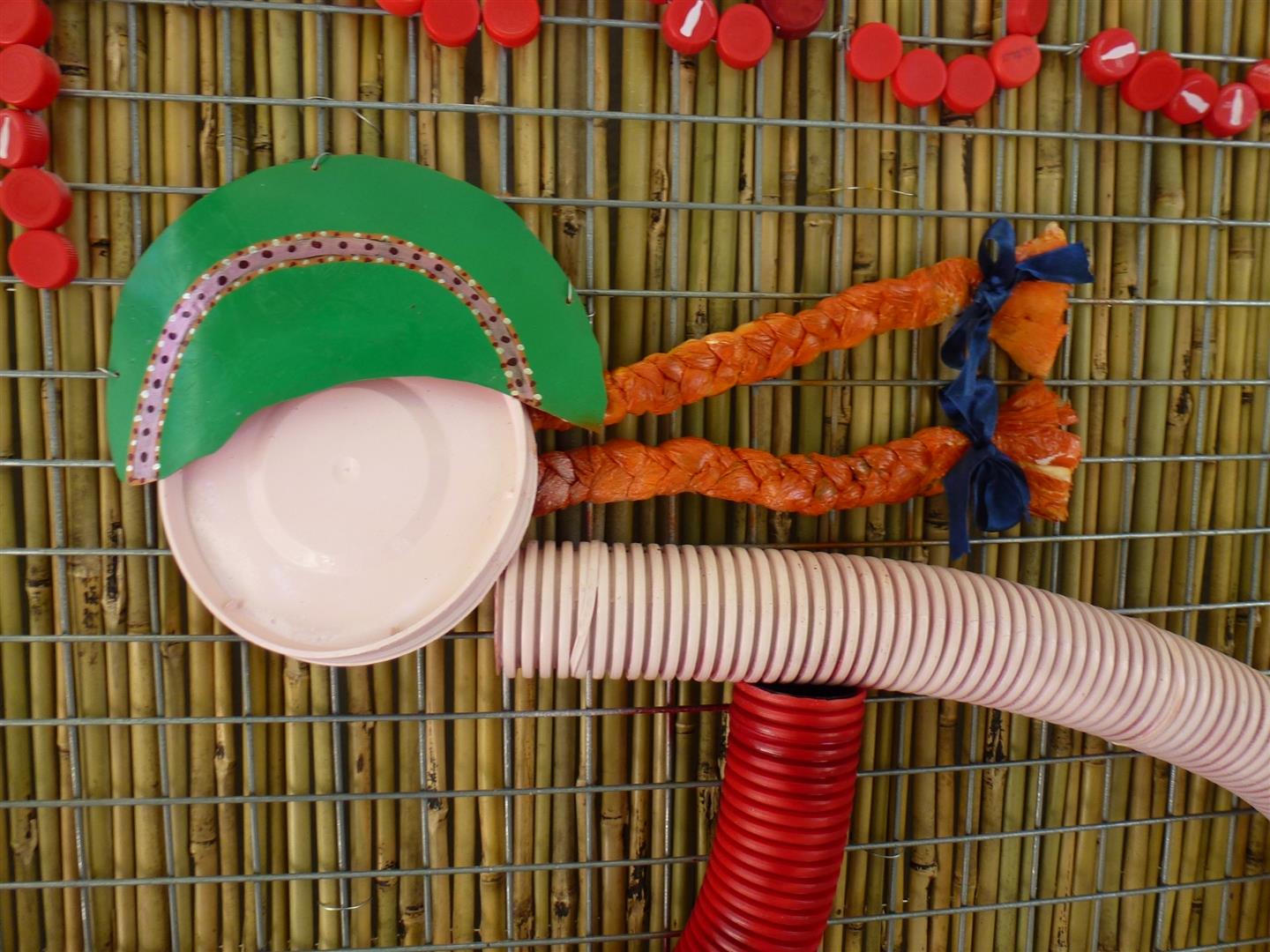 אספנו חומרי פסולת רבים, כמו פסולת בנין, צינורות ומכסי פלסטיק, שקיות ניילון, פקקי פלסטיק, שרשראות וגלגלי אופניים, רשתות ישנות וחומרים נוספים שיצאו מכלל שימוש ומהם התחלנו לעצב את הדמויות של הילד והילדה הרכובים. לקחו חלק בפעילות ילדי שכבת כיתה ד' וה' שהובילה את הפרויקט המורה סיגל מזרחי שעבדה איתי בשיתוף פעולה להצלחת הפיסול הסביבתי.