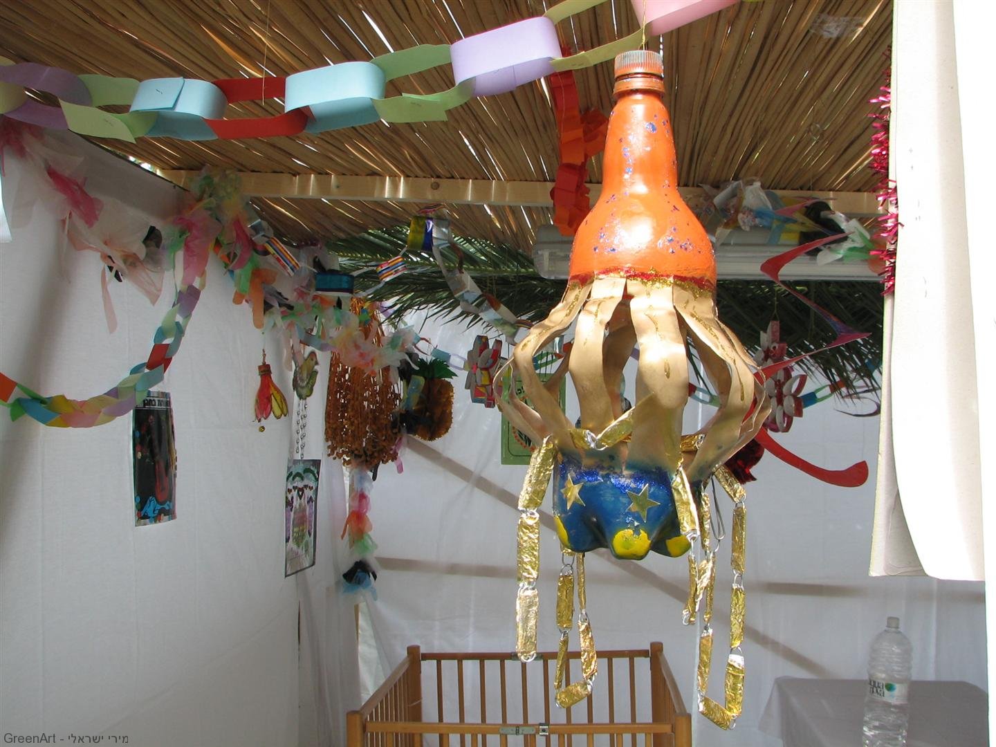 לא צריך ללכת לקנות קישוטים, ניתן ליצור כיד הדמיון הטובה, לצבוע, לקשט ולתלות בסוכה המוארת והירוקה מקבלת את האושפיזין בהושטת ידה לסביבה..