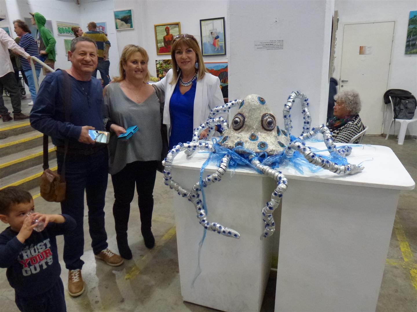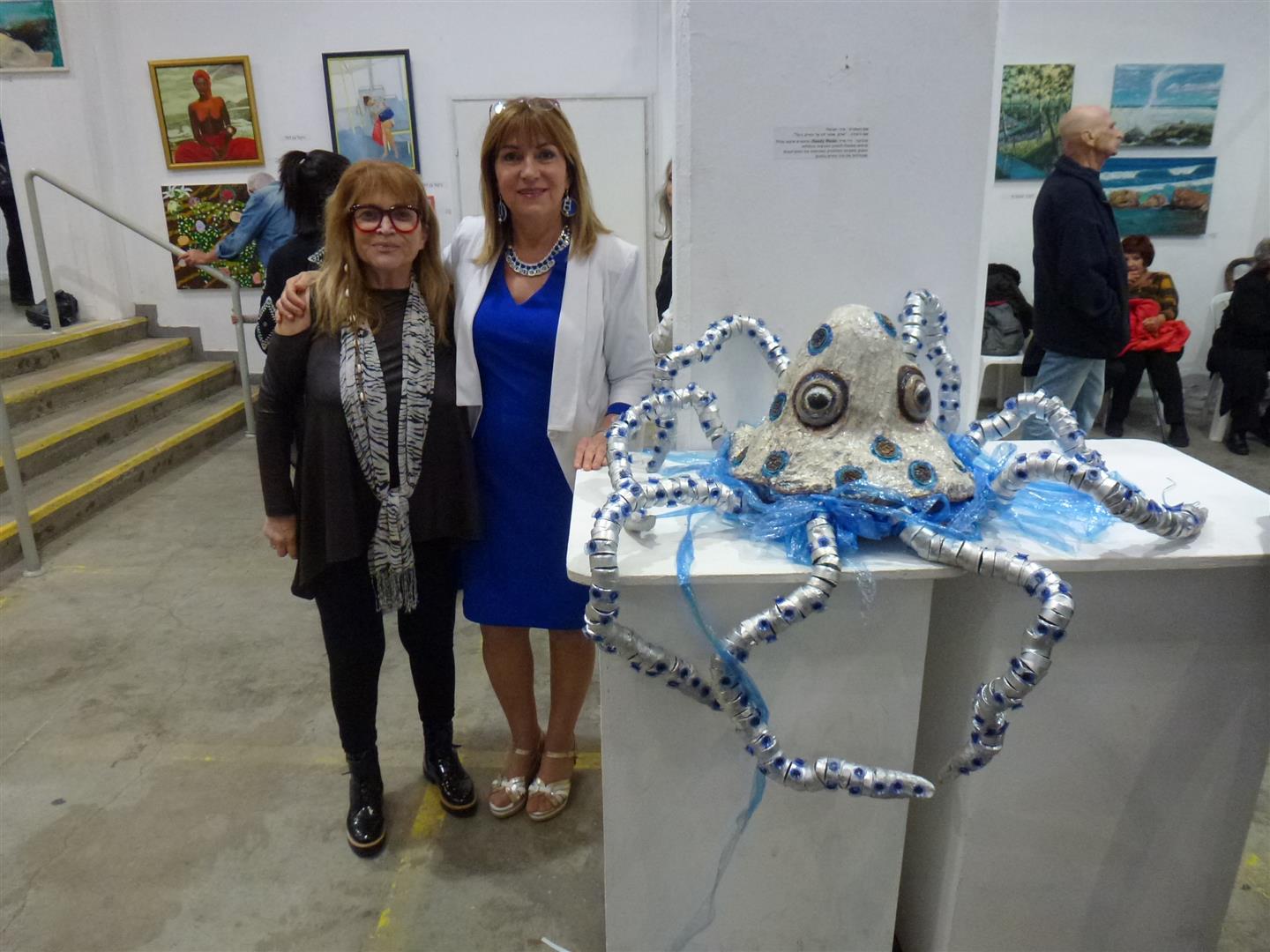 The Blue Octopus Rings – Ecological art for the exhibition. a message to the humans of the damage it causes to animals that suffocate from the plastic in the ocean . that destroy the marine creatures in the ocean