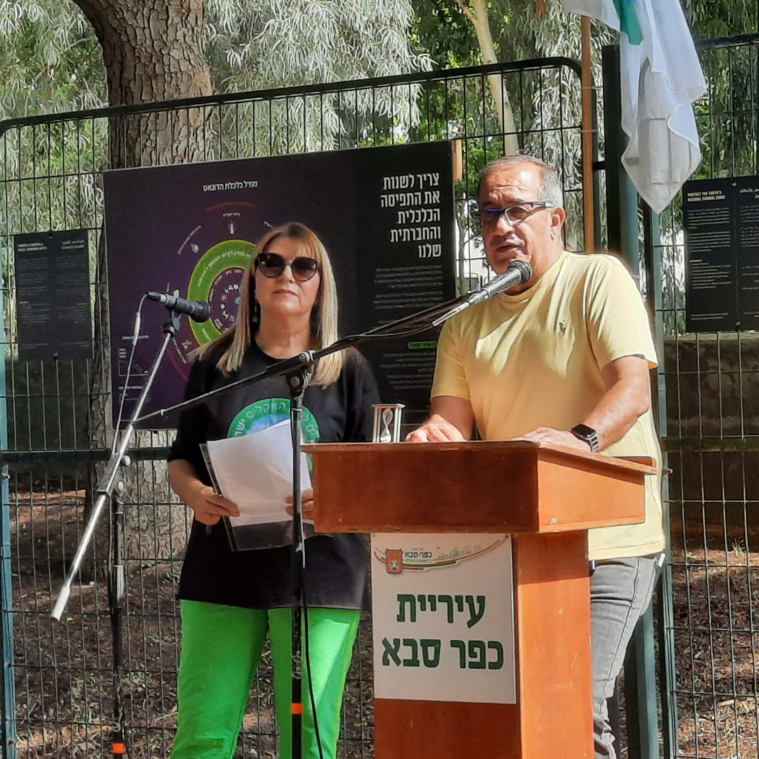 נציגי תנועת "הורים למען האקלים הגענו מוקדם לנקות את הפוסטרים, לדאוג למיקום מערכת ההגברה, פודיום הנואמים, כסאות לאורחים, דוכני ההסברה, דגלי התנועה לתלייה, מכלי מים לשתייה וכוסות רב פעמיות, עגלת קפה ושתיה, מיקום השתילים של עמותת "שכולו טוב" וארגנו את המקום לקראת המוזמנים לפתיחה החגיגית.